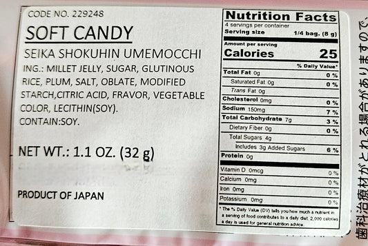 Seika Japanese Plum Soft Mochi Candy - Ume Mocchi ( 1.1 oz, Pack of 1)
