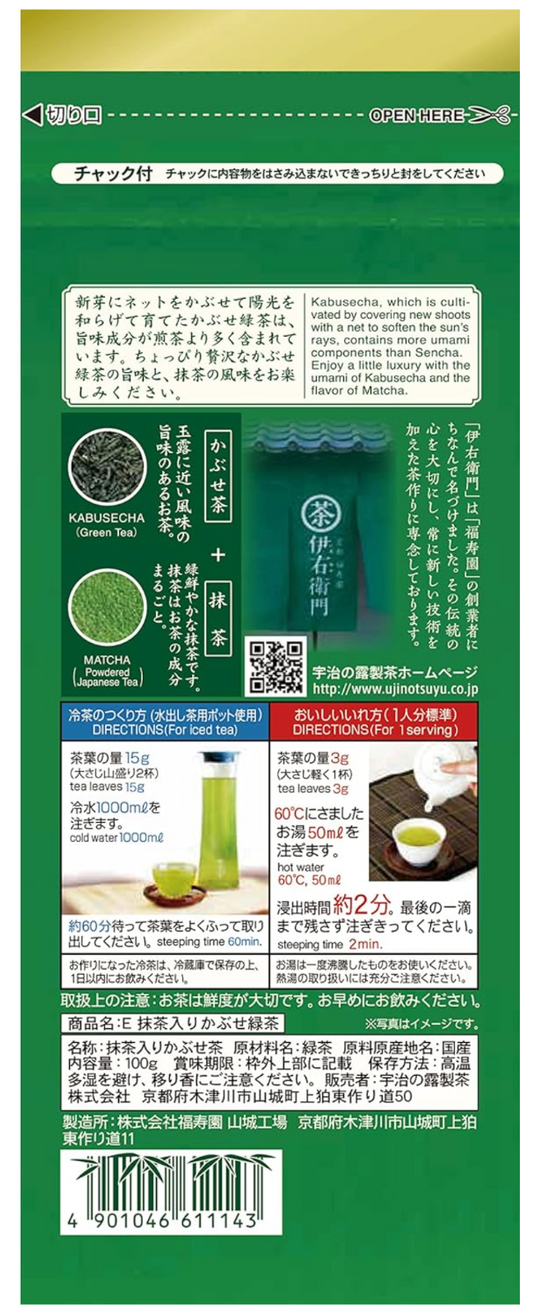 IYEMON CHA- Japanese Matcha Blend Kabuse Ryokucha Loose Leave Green Tea - 100g