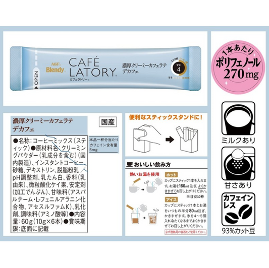 AGF Blendy Cafe Latory Stick Creamy Cafe Latte Decaf 6 sticks 2.1 oz - Japan