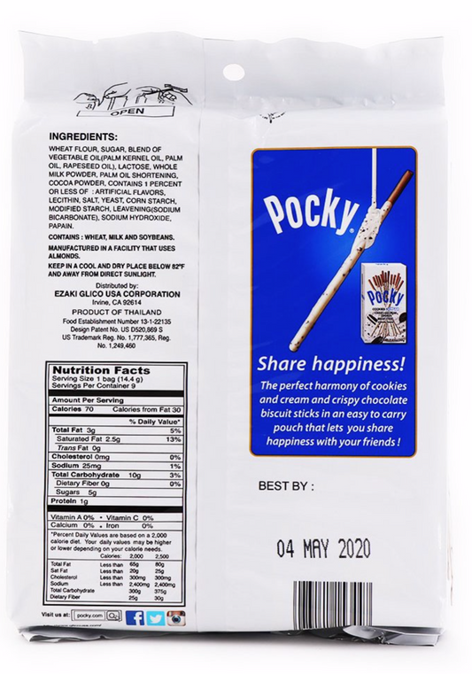 Glico Pocky Cookies and Cream Covered Biscuit Sticks 4.57oz (9 Packs Per Bag)