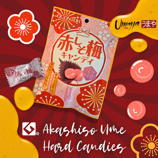Ogontoh Akashiso Ume Candy 1.6oz / 47.4g | Japanese Red Perilla(Shiso) & Plum Flavor Refreshing Candy