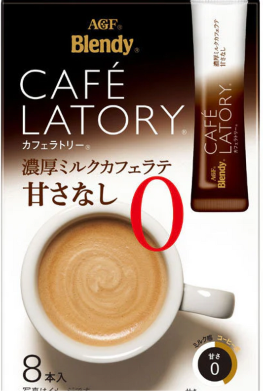 AGF Blendy Cafe Latory Milk Cafe Latte Non-Sugar 8 Sticks In Box 91g - Japan