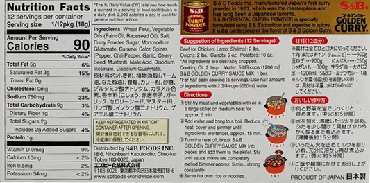 Japanese S&B Golden Curry Sauce Mix - Mild 7.8oz (220g) - Pack of One