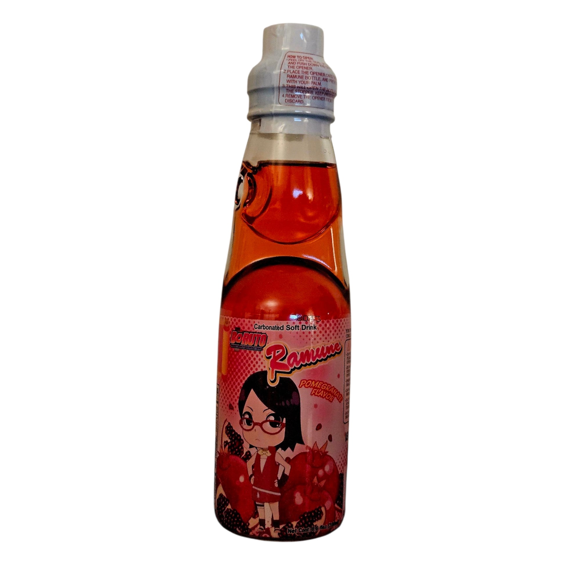 Boruto Pomegranate Ramune is a refreshing beverage that combines the tangy flavor of pomegranate with the classic fizz of ramune. Each sip offers a delightful burst of sweet and tangy ripe pomegranates, making it the ultimate refreshing choice.