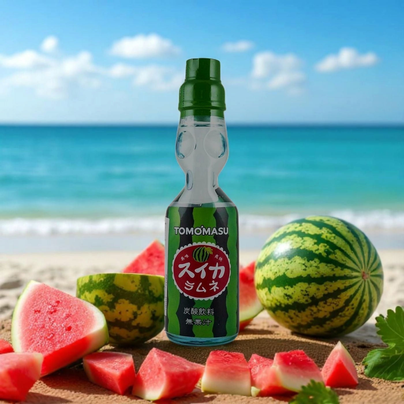 The listing is for Tomomasu Watermelon Marble Ramune Soda, each bottle 6.76 fl oz