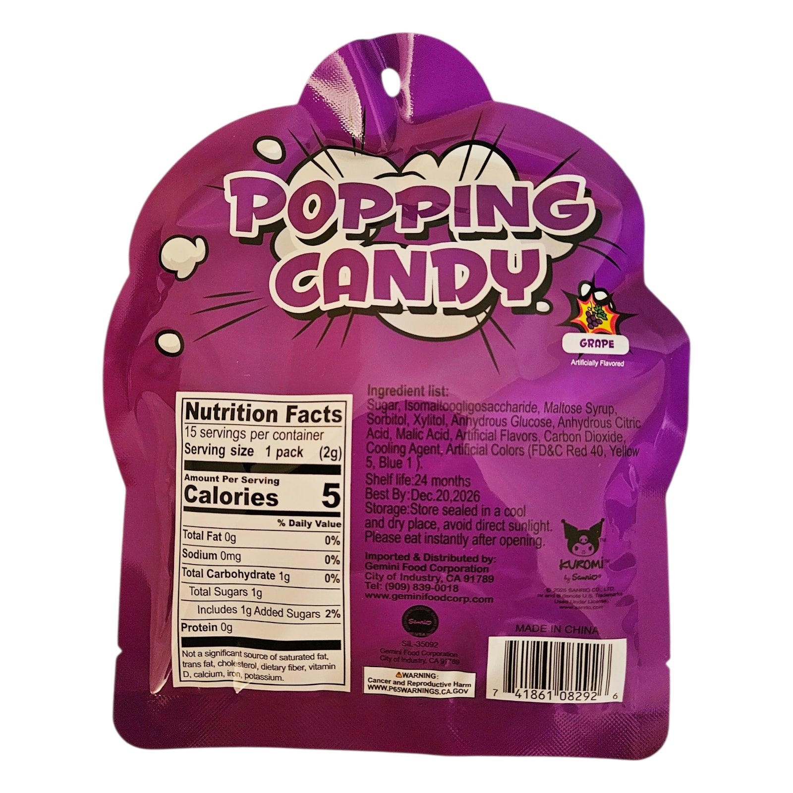 Prepare to delight your senses with Kuromi by Sanrio Popping Candy in a mouthwatering grape flavor! This popping candy invites you to enjoy a fun and unique way of savoring sweets. It's the perfect treat for every Sanrio fan and candy lover! Each package contains a net weight of 1.05 oz (30g).