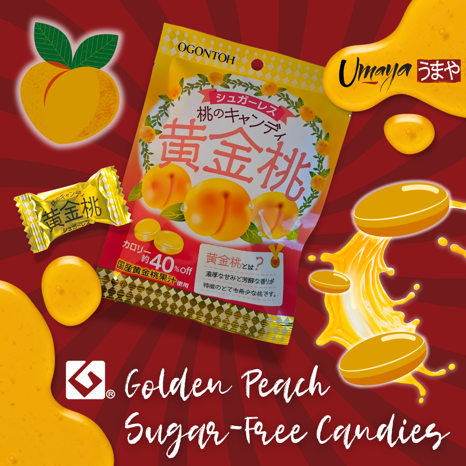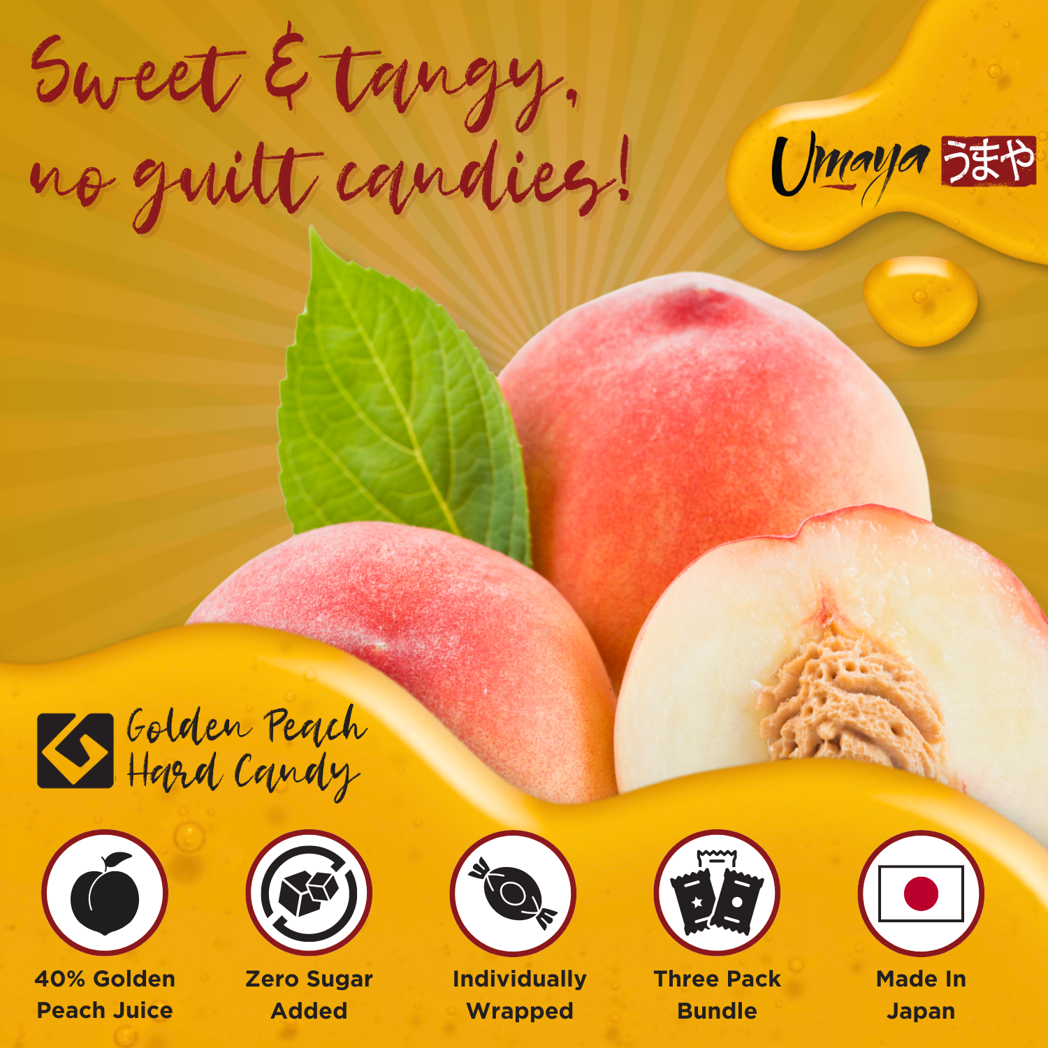 - UMAYA - Ogontoh Golden Peach Candy (1.2oz Per Pack) - Sugarfree Japanese Candies - Natural Golden Peach Juice - No Added Sugar or Artificial Colorings - Individually Wrapped - Made in Japan