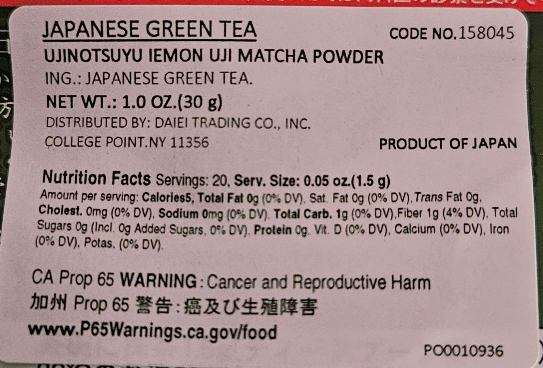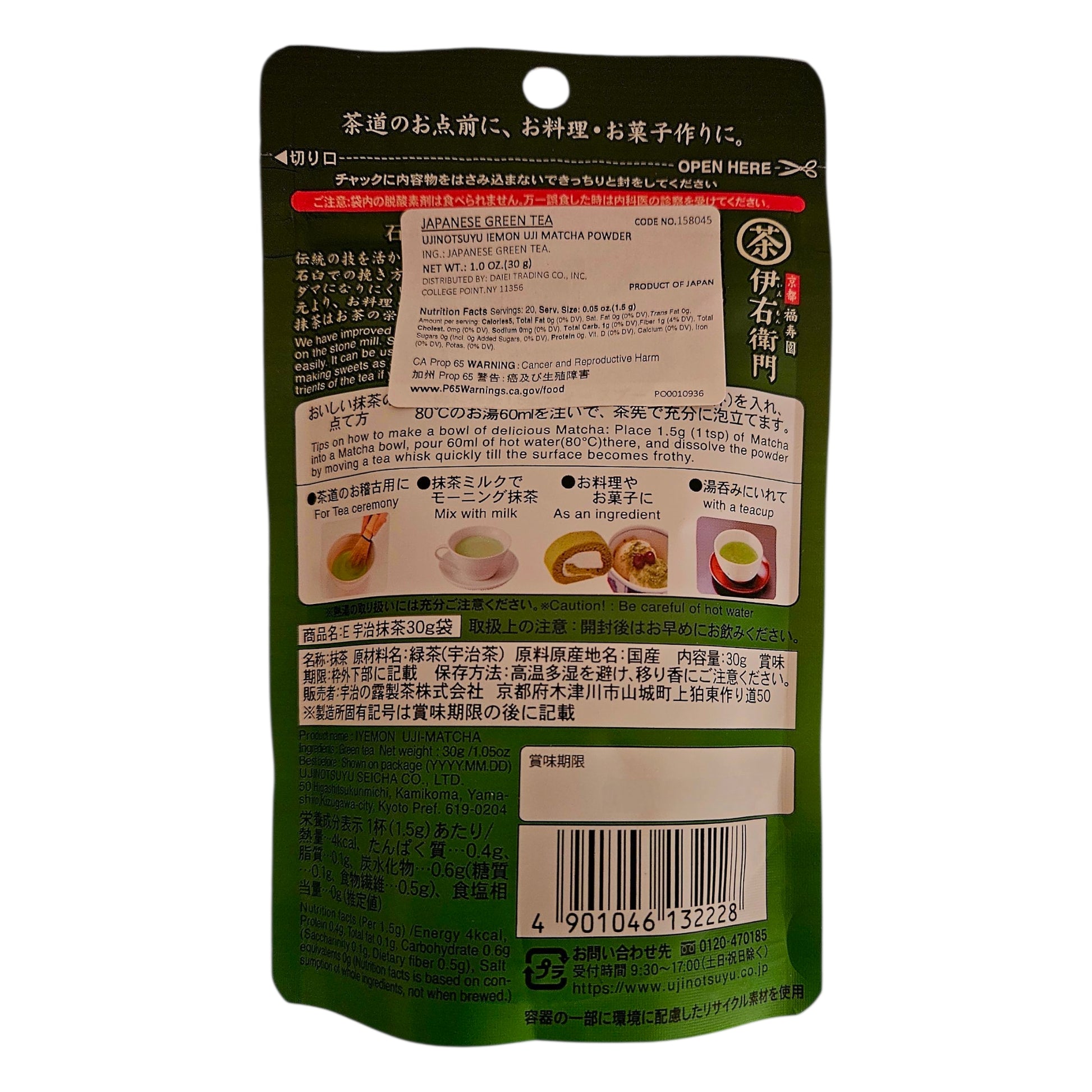 The Listing is for Ujinotsuyu IYEMON Cha Japanese Premium Stone Ground Matcha Poweder Tea 30g